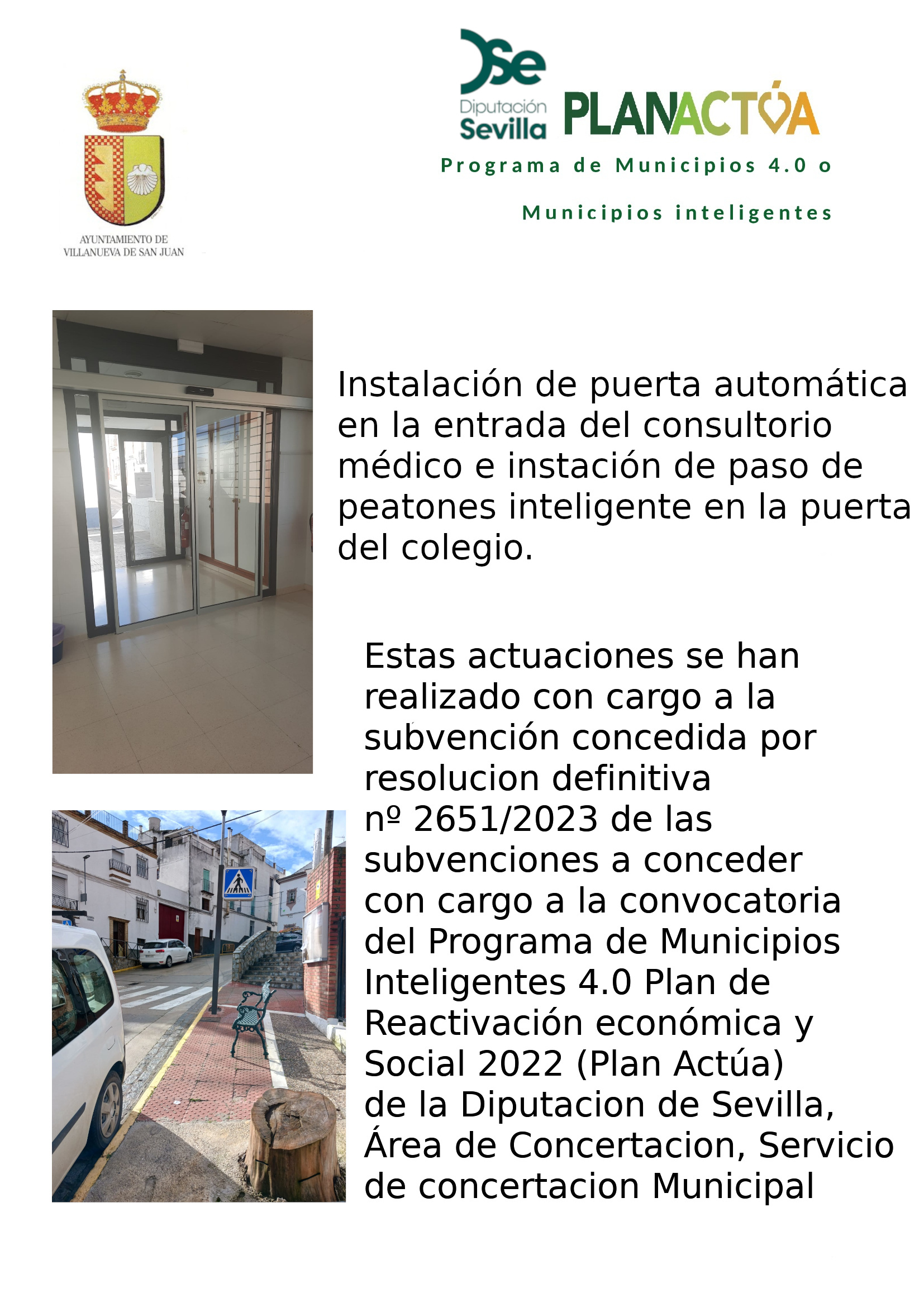 Instalación de puerta automática en la entrada del consultorio médico e instalación de paso de peatones inteligente en la puerta del colegio.