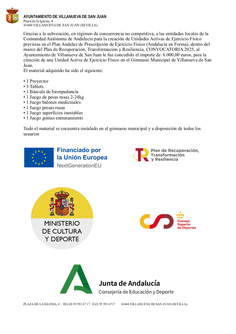 Concesion subvencion creación de Unidades Activas de Ejercicio Físico