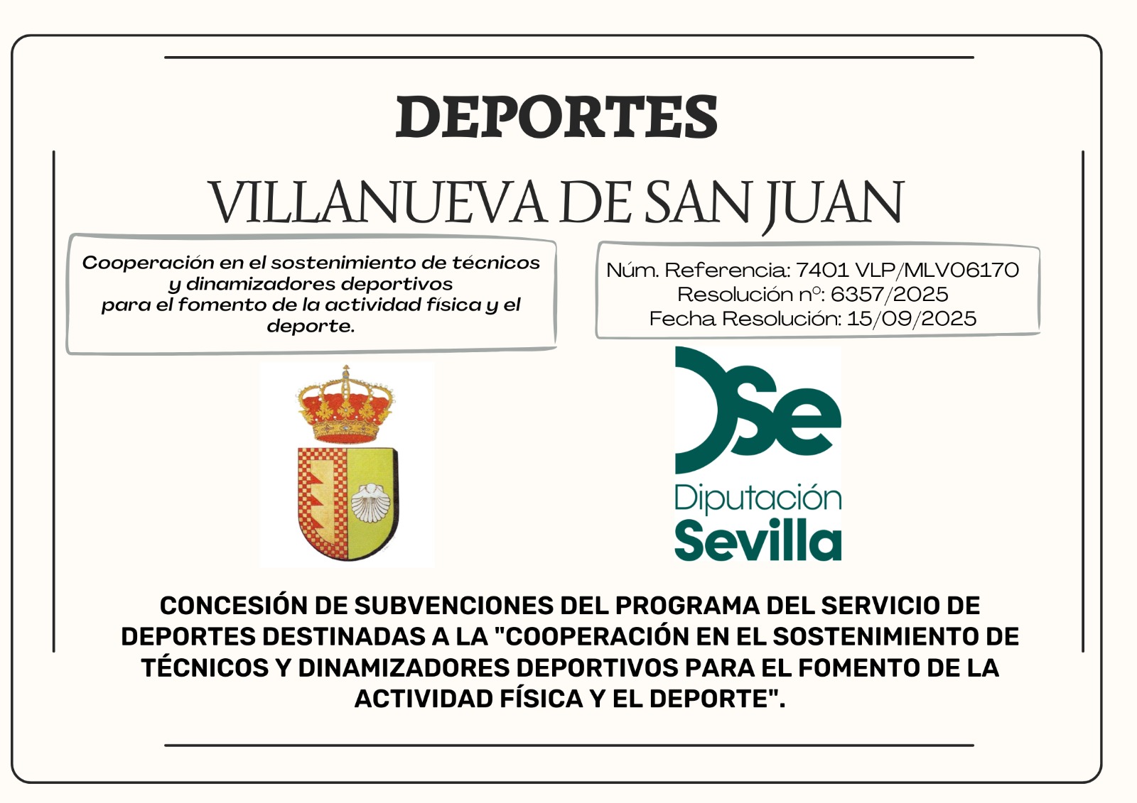 Concesion subvencion programa del servicio de deportes