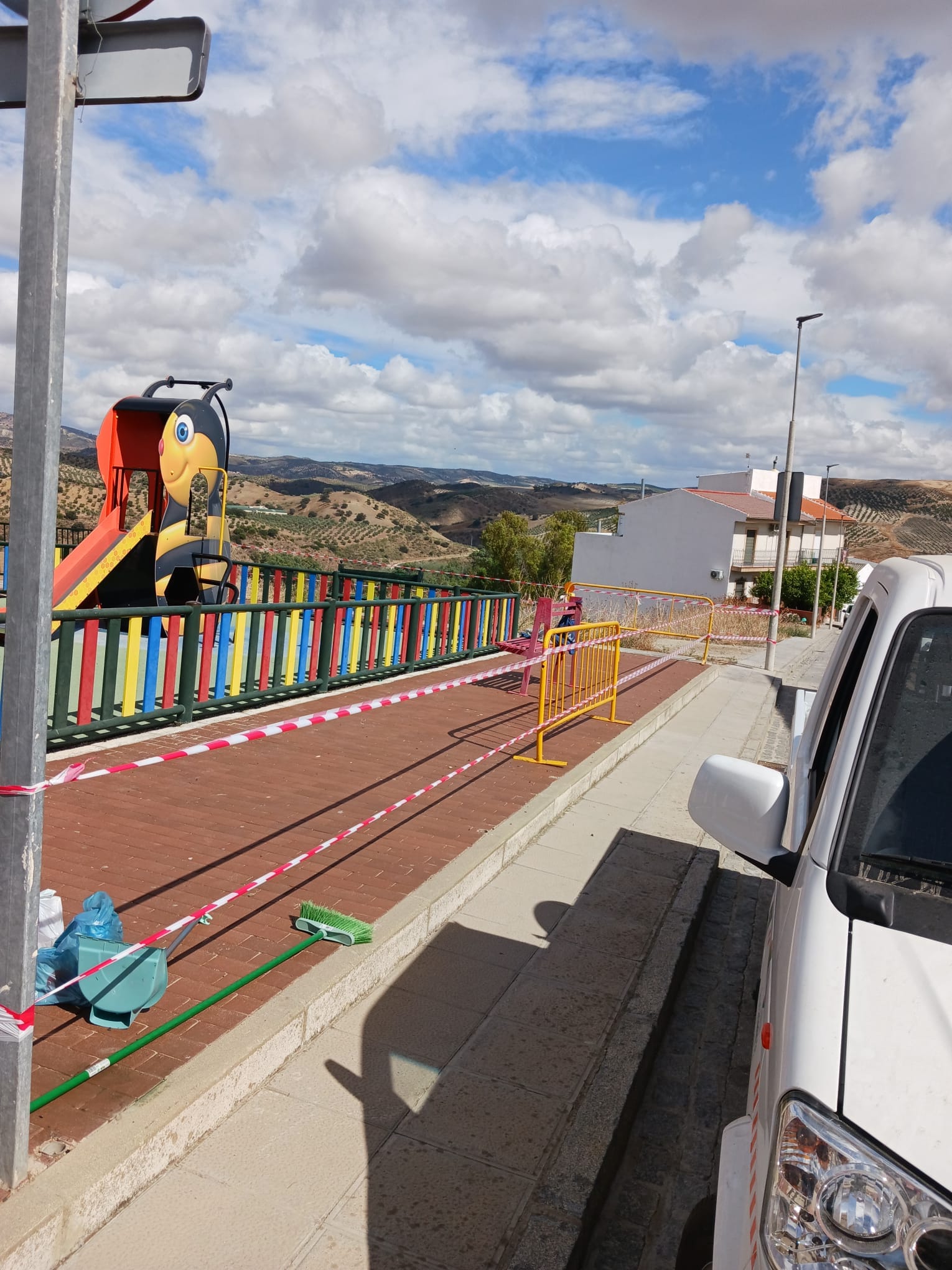 El ayuntamiento ha iniciado los trabajados de reparación de los parques infantiles de nuestro municipio .