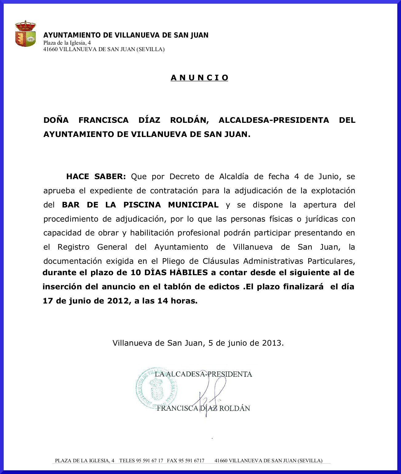 Sorteo Adjudicación Bar Piscina Municipal